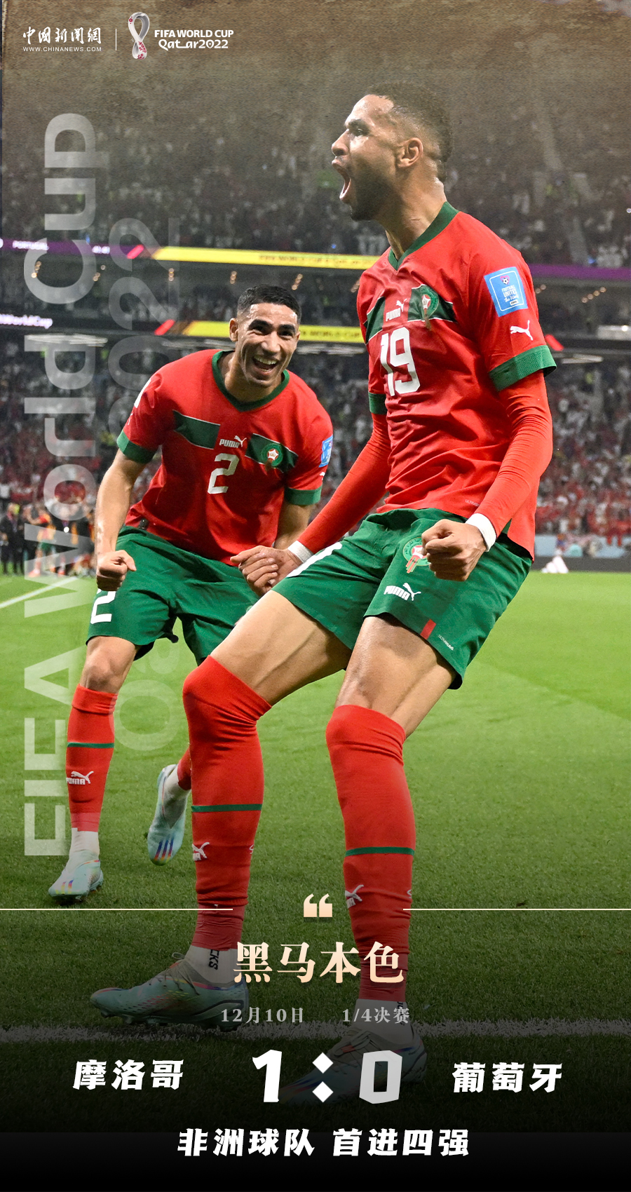 北京时间10日晚,卡塔尔世界杯四分之一决赛继续进行。凭借恩-内斯里的进球,摩洛哥1:0战胜葡萄牙,锁定一个半决赛席位。这是非洲球队首次晋级世界杯四强。C罗并列成为国家队出场次数历史最多的球员,但未能改写葡萄牙队被淘汰的命运。