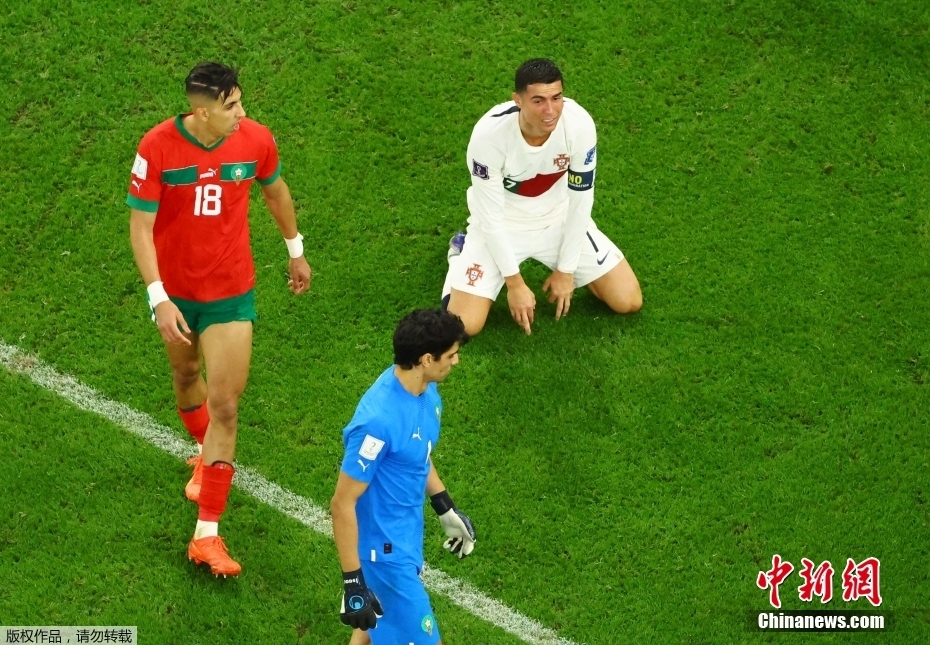 葡萄牙与摩洛哥的四分之一决赛,最终以0:1收场,“亚特拉斯雄狮”让非洲足球首次体味到了世界杯四强的滋味。 下半场伤停补时达到8分钟,期间C罗在禁区前沿觅得射门良机,但他的低射被摩洛哥门将布努拒之门外。 这是C罗在卡塔尔世界杯的最后一脚射门。可惜这一次,他没能再拯救自己的球队。 终场哨声响起,正式宣告葡萄牙队出局。C罗掩面跪倒在球场中央,身旁是三两相拥的摩洛哥队员。很快,他便消失在直播镜头中。