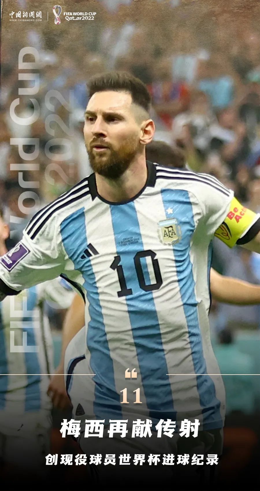 胜利的天平,从这一刻开始倒向阿根廷。 或许是由于此前两场120分钟的鏖战消耗了太多精力,克罗地亚队下半时渐渐有些跟不上对手的比赛节奏。以“跑不死”著称的布罗佐维奇在第50分钟被早早换下,这似乎已经预示了最后的结局。 在两球领先的情况下,阿根廷吸取了此前对阵荷兰时的教训。他们时刻保持着阵型的稳定,没有给对手留下反扑的空间。 第69分钟,梅西带球突破后送出妙传,阿尔瓦雷斯完成最后一击,将场上比分扩大为3:0。在阿尔瓦雷斯梅开二度的同时,梅西再次刷新了由自己保持的世界杯单场传射最年长纪录。