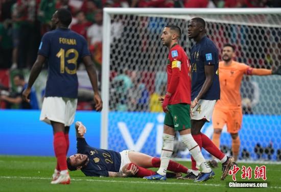 北京时间12月15日,卡塔尔世界杯半决赛,法国队对阵摩洛哥队。上半场第5分钟,特奥·埃尔南德斯进球,为法国队先拔头筹。下半场第79分钟,姆巴佩禁区内制造混乱,刚替补出场的科洛·穆阿尼破门。最终,法国队2:0战胜摩洛哥队,晋级决赛。卫冕冠军法国队将与阿根廷队争夺本届世界杯冠军。图为双方球员在比赛中。中新社记者 崔楠 摄