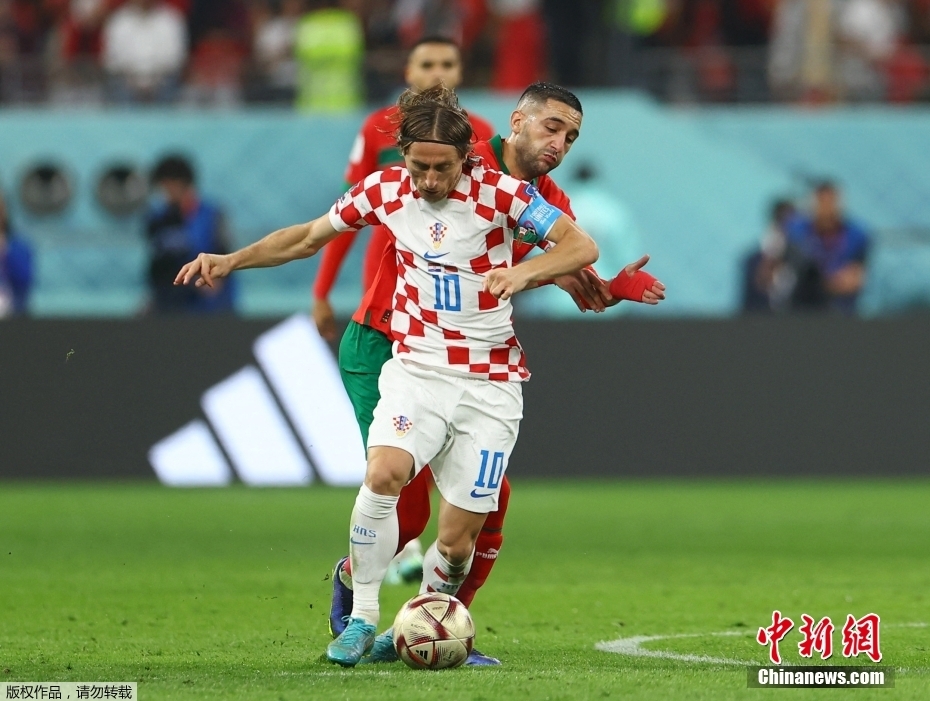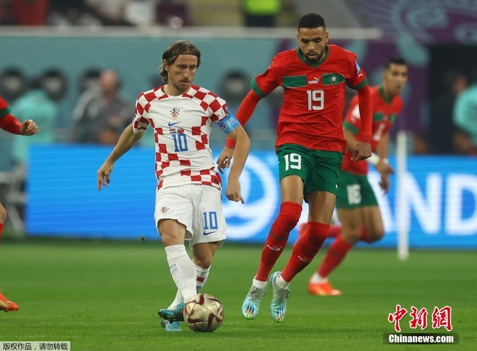 图为克罗地亚队球员莫德里奇(白)在比赛中