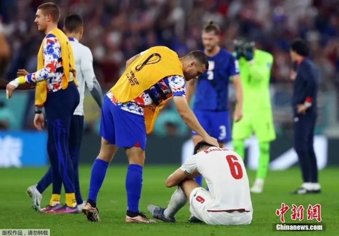 美国1:0战胜伊朗出线,赛后美国球员安慰伊朗球员。