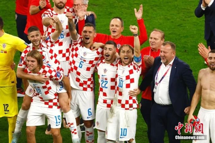 图为克罗地亚队球员庆祝获得季军 中新社记者 富田 摄