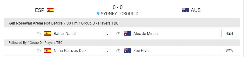 在第三个比赛日,位于D组的西班牙队将迎战英国队。届时,纳达尔会对阵英国名将诺里。