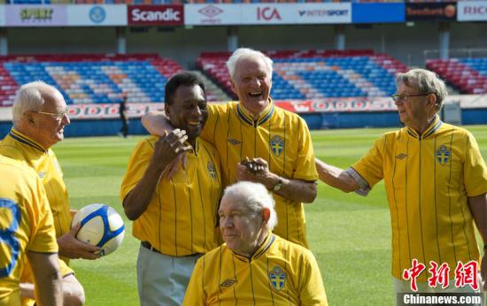 资料图:贝利现身瑞典与1958年世界杯决赛对手重聚。图片来源:东方IC