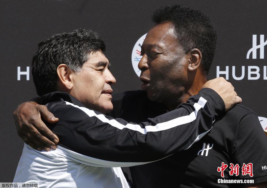资料图:图为球王贝利和球王马拉多纳。