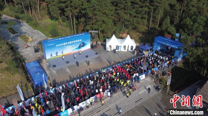 30日,2023年重庆市新年登高活动在重庆綦江古剑山举行。800余名选手齐聚古剑山风景区,通过登山健身的方式迎接新年的到来。