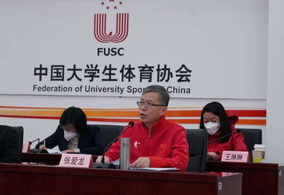 成立大会上,教育部学生体育协会联合秘书处副秘书长、中国大学生体育协会(以下简称中国大体协)副主席兼秘书长、本次中国大学生体育代表团团长张爱龙介绍了代表团组团情况及筹备情况。 本届大冬会参赛队伍中,女子冰壶、单板滑雪项目在全国开展度较高,通过项目全国选拔赛遴选出成绩优异的队伍及学生运动员代表中国参赛。短道速滑队由国家体育总局协助组队。2022年12月上旬起,3支队伍分别在哈尔滨、吉林、天津、北京集训。