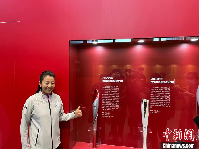 中国冬奥会首金得主杨扬8日在“奔向荣光——奥运精神展”现场。 高志苗 摄