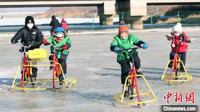 孩子们在玩冰上自行车。 黑龙江省体育局提供