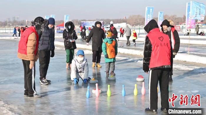 孩子们在玩冰上保龄球。 黑龙江省体育局提供