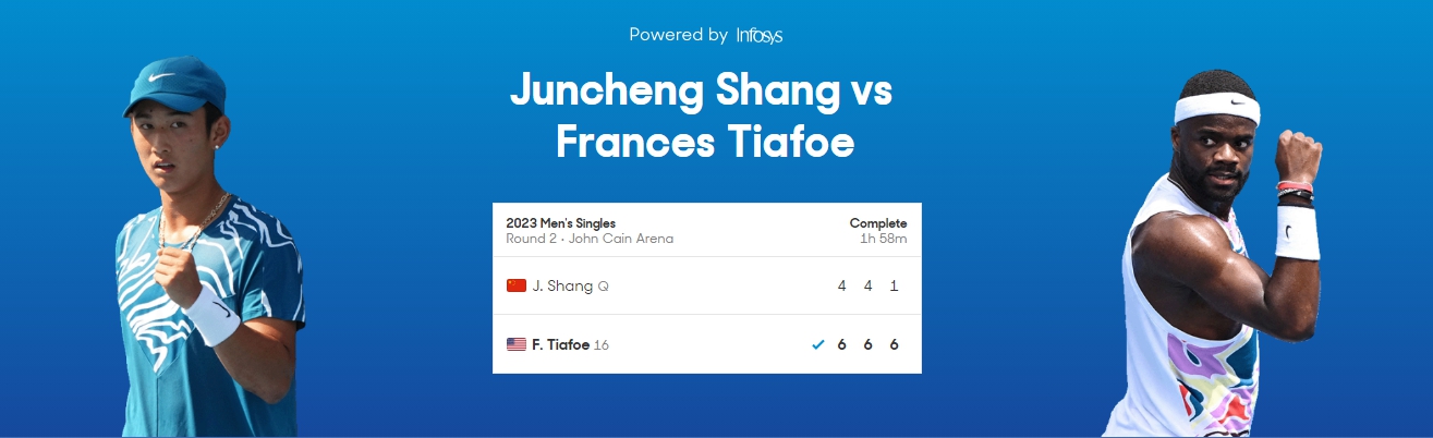 北京时间18日,2023澳网男单次轮继续进行。17岁中国小将商竣程在面对16号种子蒂亚福时,以0:3(4:6/4:6/1:6)落败,无缘32强。作为本届澳网男单正赛签表中最年轻的球员,商竣程的表现已经让人眼前一亮。此前他战胜德国选手奥特,成为公开赛年代首个晋级澳网第二轮的中国大陆男球员。