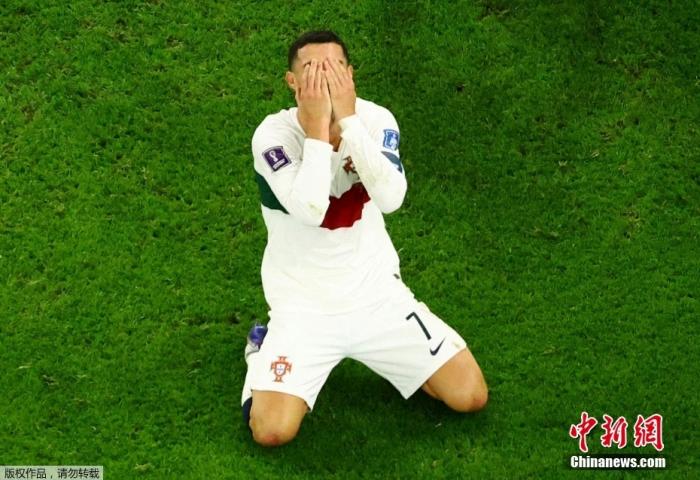 资料图:当地时间12月10日,世界杯1/4决赛葡萄牙队和摩洛哥队比赛终场哨响起那一刻,C罗掩面跪地。虽然37岁的C罗竞技状态已不复当年,但他那颗永不言败的心仍然令人感动。