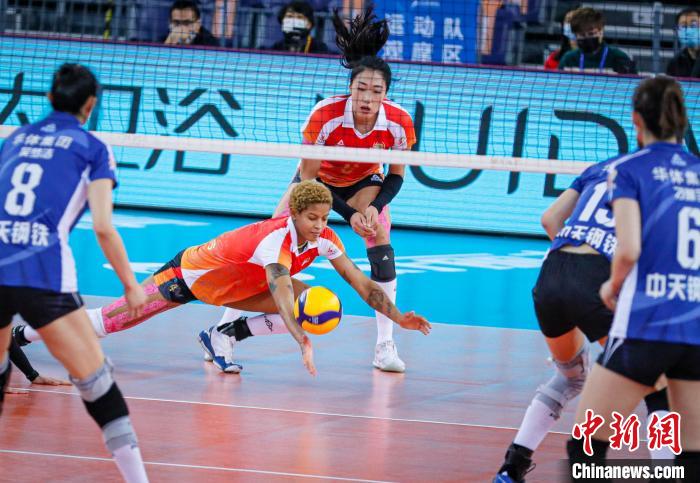 排超联赛瓦尔加斯救球瞬间。 天津市体育局供图