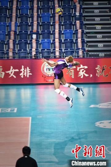 瓦尔加斯在排超联赛中扣球瞬间。 天津市体育局供图