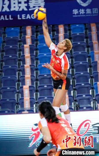 瓦尔加斯与天津女排队友征战排超联赛。 天津市体育局供图