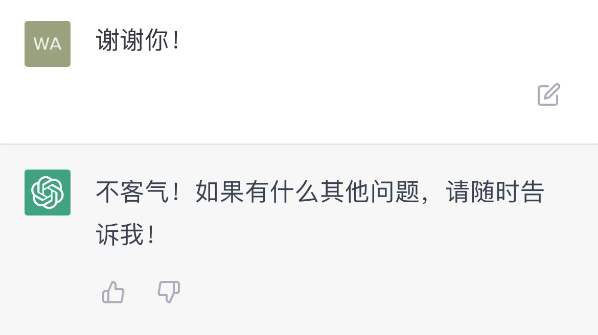 最后,我决定以一个比较温情的问题结束这场互相为难的对话,尽管ChatGPT说它并没有情感和愿望,但还是祝福中国足球能够取得成功。 这一刻,被我“调戏”了半天的软件成了我的“嘴替”。
