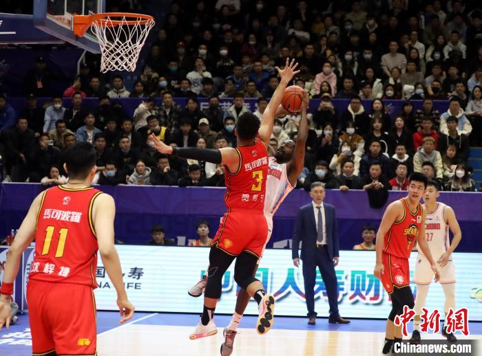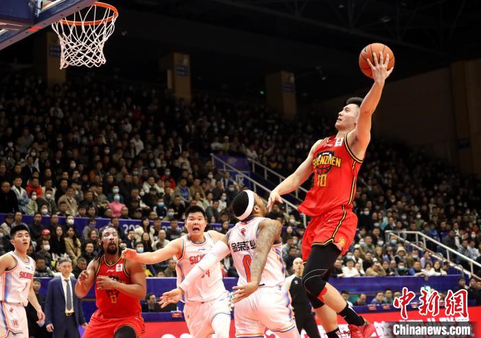 深圳男篮队员沈梓捷本场比赛得到7分7篮板3助攻,帮助球队开场建立起领先优势。 吕杨 摄