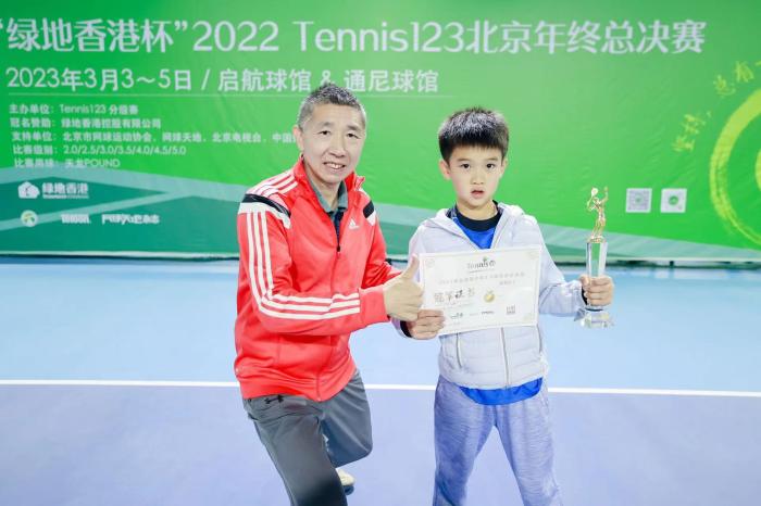 汪俊介绍,为增强选手斩获冠军和突破自我的仪式感,赛事从去年开始为选手颁发升级奖牌,每晋升一个级别都会领取到对应的奖牌,集齐所有3-5枚升级奖牌可组合成完整的大奖盘。来自北京育新学校的15岁女生郭晶玮,通过七年的坚持成为首位集齐奖牌拼接成奖盘的选手。 从2011年开始,针对各级别年终排名前8或16名,Tennis123每年举办一次年终总决赛,至今已连续举办了11届。经过三天的激烈角逐,各级别总冠军尘埃落定,最高级别5.0级总冠军来自北京化工大学校队的陆鹏宇,亚军是前全国大学生冠军、来自浙江大学前校队的李俊岐;4.5级总冠军是14岁王梓聪,亚军是14岁王嘉阳;获得青少年4.0级冠军是来自北京市育新学校的14岁范一航,亚军是来自北京千行俱乐部10岁小女生王嘉懿;成人4.0级冠亚军是来自云南昆明的李想和北京32岁博士张兴宇。青少年3.5级冠军被来自云南昆明的王子睿斩获,亚军得主是北京10岁的付初冉。成人3.5、3.0和2.5级别的总冠军分别是周硕、黄泽柳和田明宇; 在不分性别年龄的各级双打中,5.5级双打冠军是混双组合王茂彬/李婉玥,6.5级双打冠军是男双组合祁宏斌/朱江毅,7.5级双打冠军是女双组合李雨茜/马娜,8.5级双打冠军是男双组合唐龙/杨瑞朗。