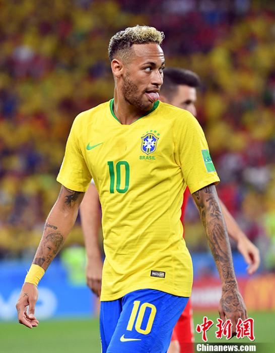 资料图:内马尔头顶“泡面”出场。 中新社记者 毛建军 摄