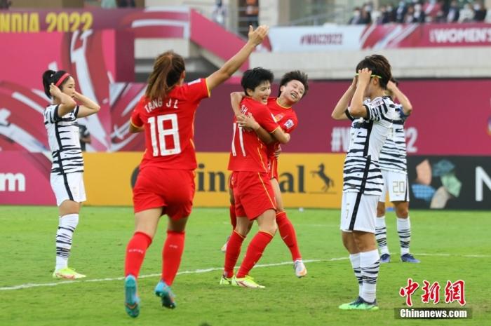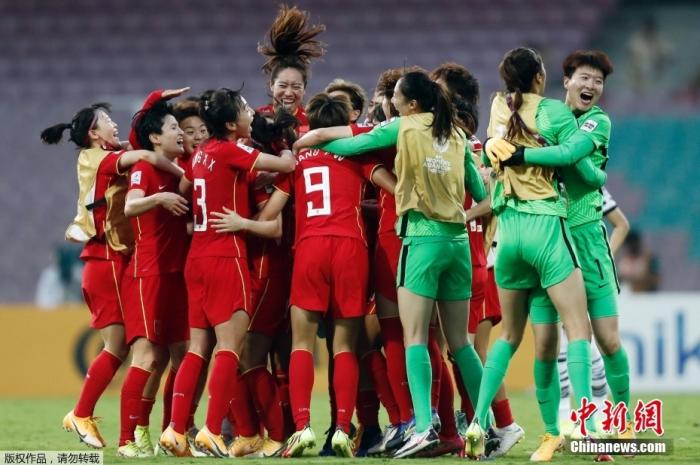 资料图:中国女足在亚洲杯比赛中。 图片来源:视觉中国