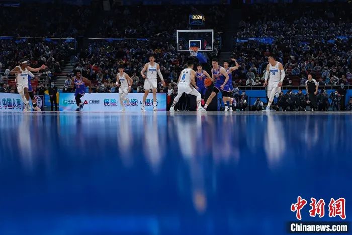 3月17日晚,新疆男篮对阵北京首钢。中新社记者 韩海丹 摄