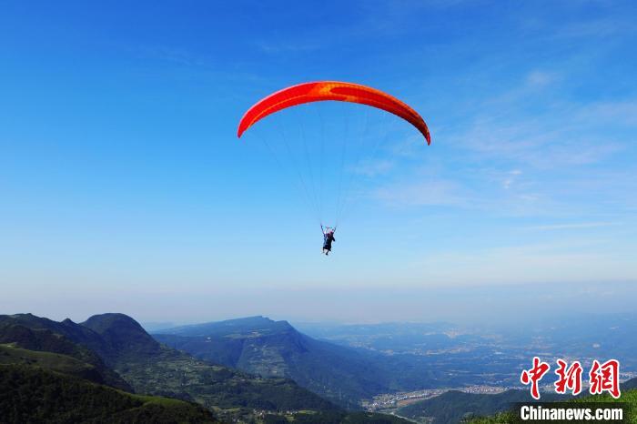 滑翔伞爱好者飞越百里荒。(资料图) 秦先寿 摄