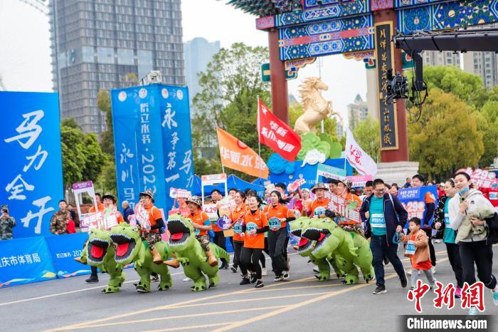侨立水务·2023永川马拉松26日在重庆永川区兴龙湖牌坊鸣枪起跑。来自全国各地的万名跑友用脚步丈量城市之美。