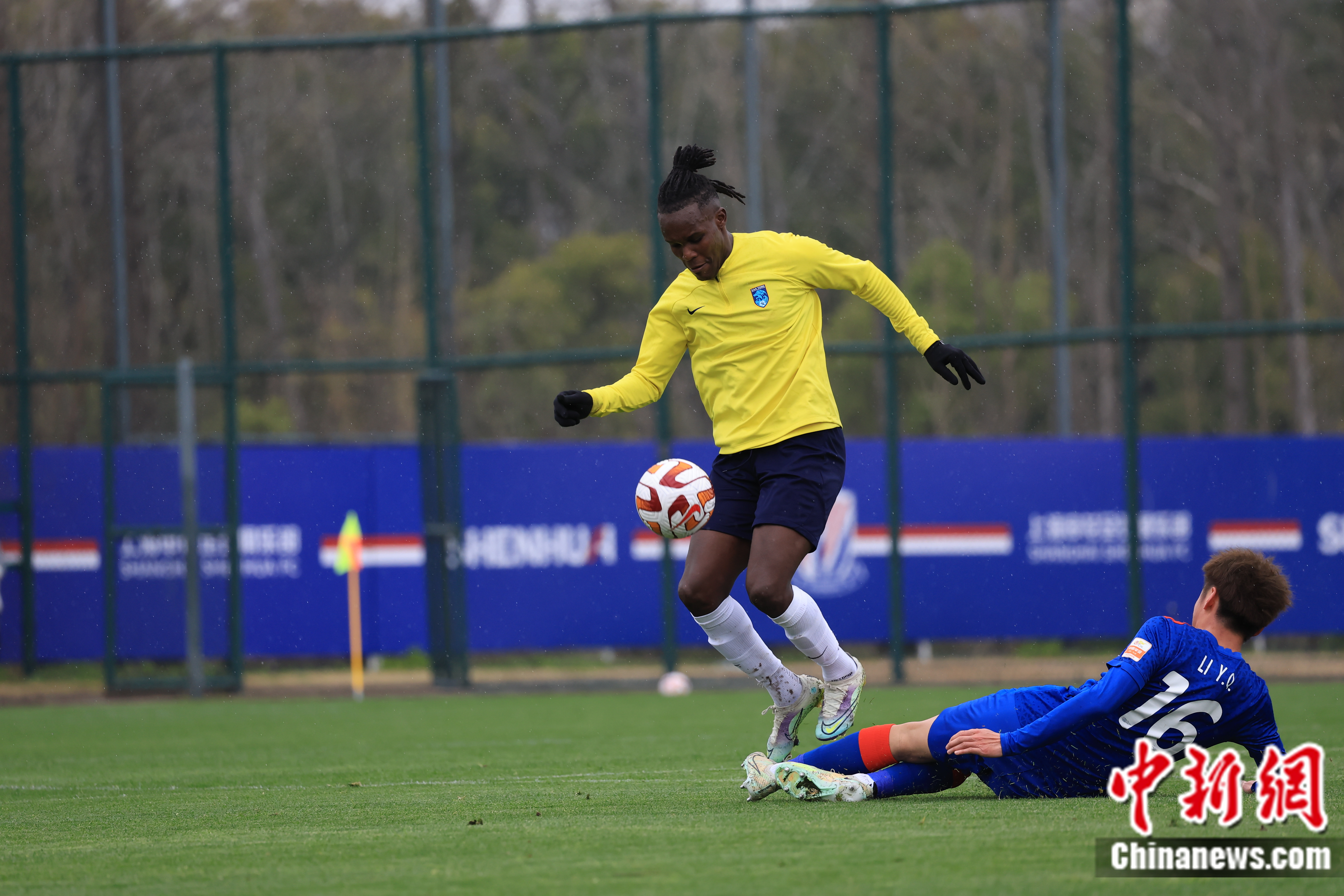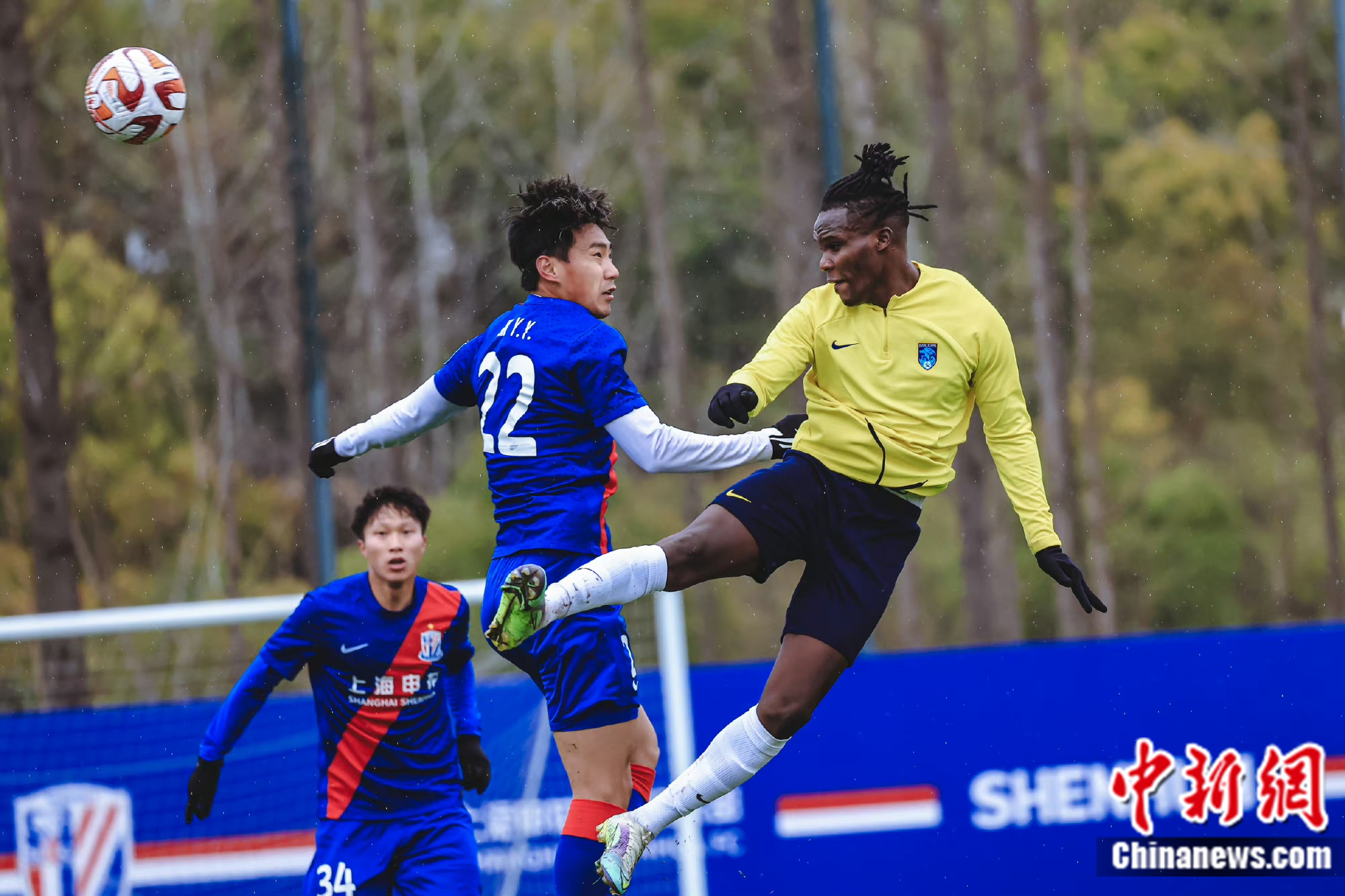 卡斯蒂略(右一)在热身赛中。南通支云足球俱乐部供图