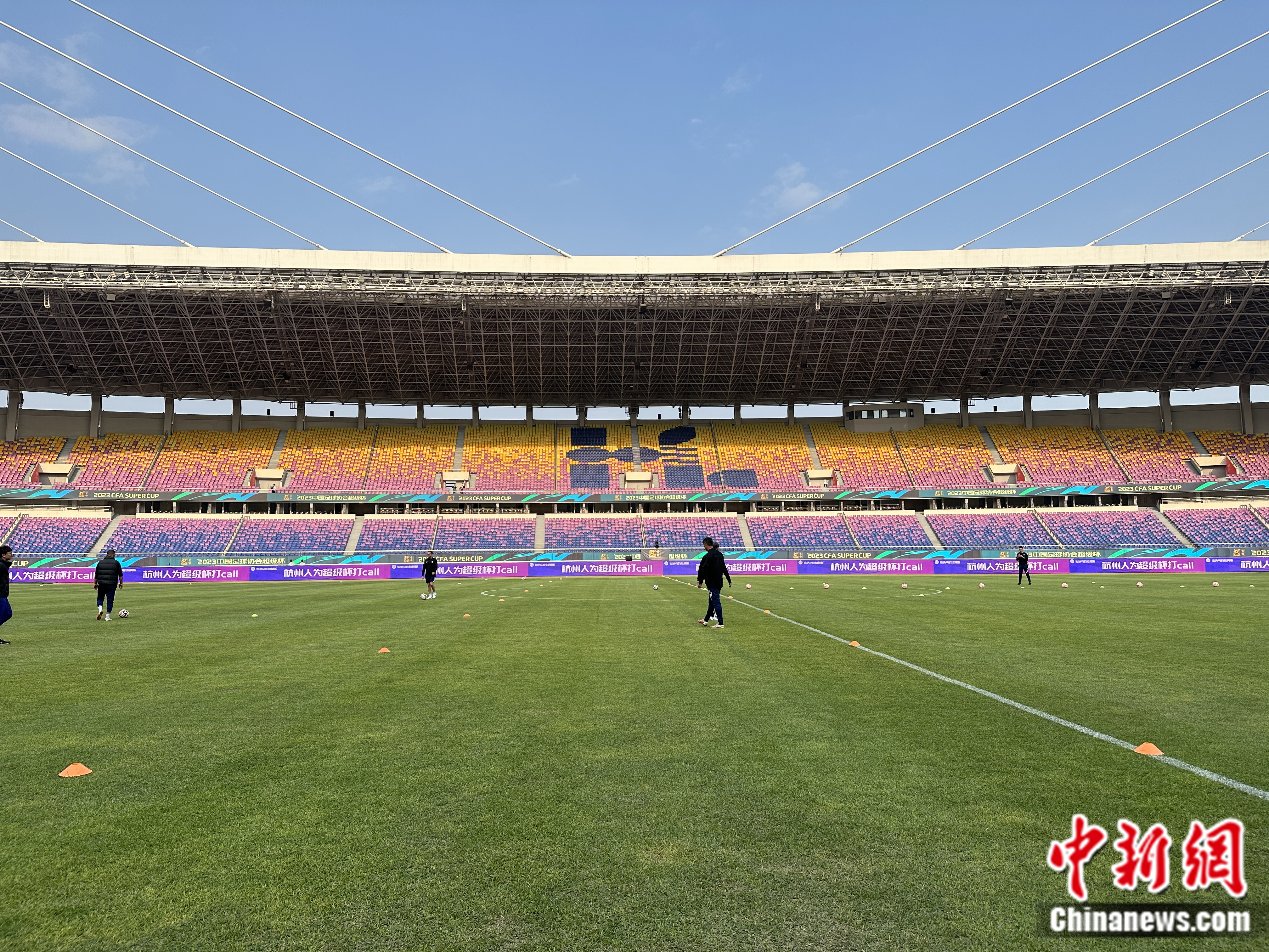 山东泰山队赛前训练中。中新网记者 卞立群 摄