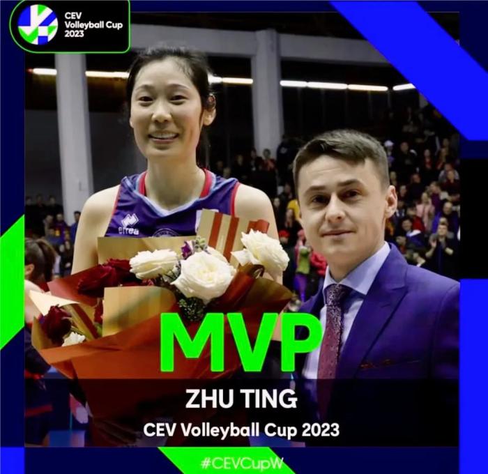 稍显遗憾的是,两场比赛砍下43分的朱婷无缘最终的MVP奖杯,该奖项被她的队友,本场比赛得到20分的接应二传安特罗波娃获得。 尽管如此,朱婷在本赛季欧联杯上的表现堪称惊艳。据统计,她在本赛季欧联杯比赛中扣球313扣162中,在总得分榜上排名第一,成功率为51.8%,排名第七;效率46%,排名第三;另外,接一传220个,到位率达67%。 这无论对朱婷本人还是已经进入杭州亚运会和巴黎奥运会备战节奏的中国女排都无疑是一个好消息。