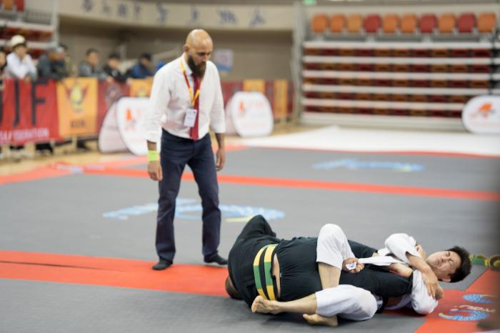 来自中国人民公安大学的王攀很早接触巴西柔术。据他介绍,自己在学校教的就是防卫控制课程,因而接触到这项运动。接近8年时间的联系、参赛和教学,让他对这个在国内尚不算普及的运动有了自己的认识:“这个项目实用性很强。巴西柔术的规则比较开放,在对抗中限制的条件非常少。还有就是它给人的压力感很强,对于塑造一个人的性格和抗压能力也很好。” 或许也是因此,稍加观察便可发现,在巴西柔术比赛场上,有许多小朋友互相竞技切磋。