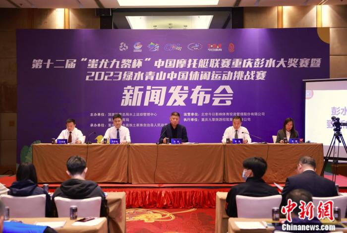 4月24日,第十二届“蚩尤九黎杯”中国摩托艇联赛重庆彭水大奖赛暨2023绿水青山中国休闲运动挑战赛发布会在北京举行。5月26日,这两项国内高水平水上运动赛事将在重庆彭水苗族土家族自治县的乌江江面上拉开战幕。