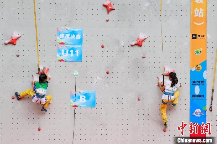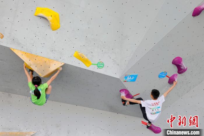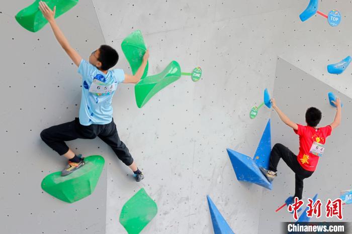 图为U13年龄组攀石赛。 赛事组委会供图