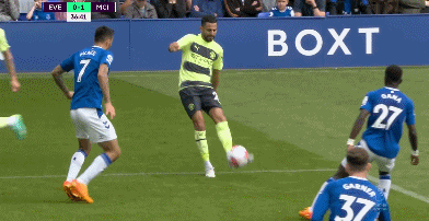 第37分钟,马赫雷斯传中,背对球门的情况下,京多安“神龙摆尾”,右脚外脚背将球撩进球网,埃弗顿门将皮克福德措手不及!这样的进球,你会想起伊布——天马行空的想象力,匪夷所思的破门技巧。