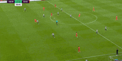 上半场,坐镇主场的纽卡斯尔场面占优。第23分钟,特里皮尔角球开出,布莱顿年轻射手昂达夫,头球回头望月自摆乌龙,帮助纽卡斯尔打破场上僵局。昂达夫的乌龙,也是本赛季布莱顿在英超打进的第6粒乌龙球。