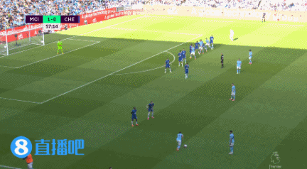 第58分钟,曼城开出前场定位球,菲利普斯头球攻门击中立柱↓