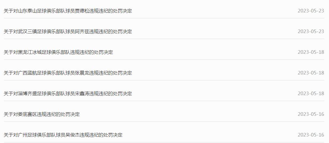 处罚公告。图片来源:中国足协网站
