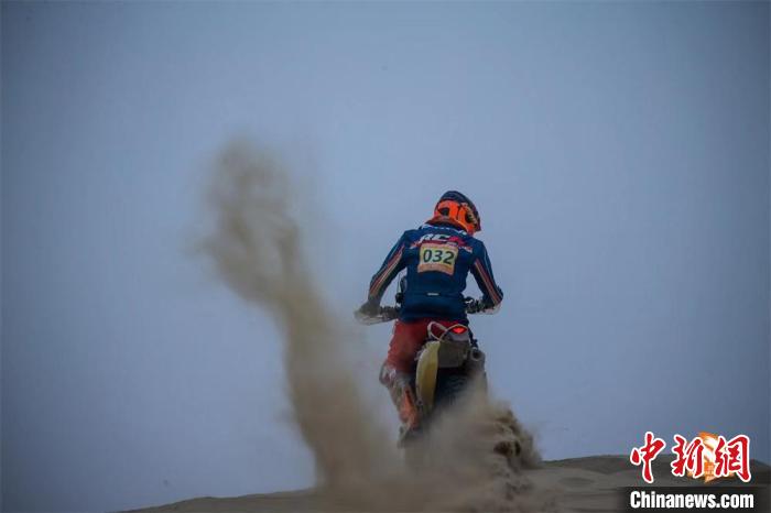 032号摩托车比赛中。 环塔拉力赛官方供图