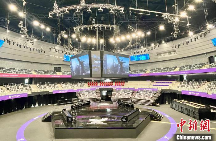 中国杭州电竞中心场馆内的巨大斗屏。 张煜欢 摄