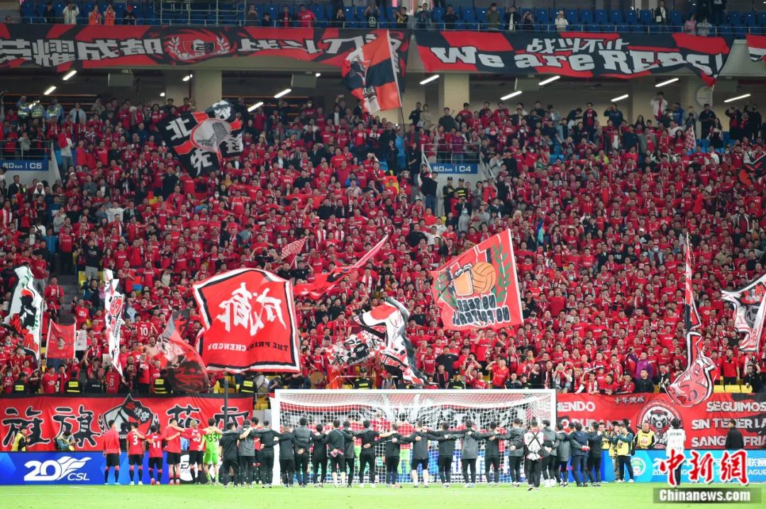 球市火爆之下,专业足球场的吸引力不可忽视。 对于传统强队北京国安和上海申花来说,球迷基础和文化本就深厚,满足承办世界杯赛事标准的专业足球场,更多是锦上添花。 而成都蓉城主场凤凰山专业足球场,则是彻底激活了四川球迷的看球基因。上赛季重返中超后,球队逐渐步入正轨,目前已经跨赛季24场不败,暂列中超第二。 出色的成绩保障,加上主场大合唱等环节设置带来的深度参与感和体验感,让成都球市持续火爆、不断出圈,吸引越来越多的人走进球场。