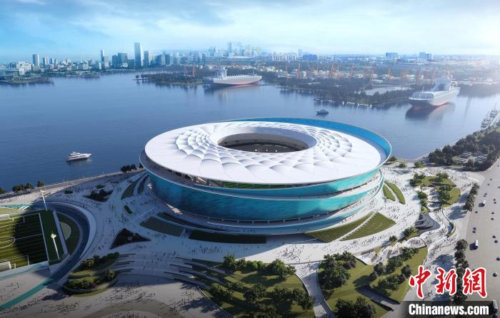 大连梭鱼湾专业足球场效果图。 中冶钢构供图
