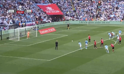 网易体育6月3日报道: 北京时间6月3日晚22点整,2022/23赛季英格兰足总杯决赛在温布利大球场打响,曼城对阵曼联。上半时京多安开场闪击为蓝月亮取得梦幻开局,随后格拉利什送点、B费点射命中帮助红魔扳平比分;下半时,京多安先是弹射破门实现梅开二度并再度为蓝月亮取得领先优势,随后越位进球被吹无效。全场比赛结束,曼城2-1击败曼联,时隔4年再度夺得足总杯冠军。 双方各项赛事历史交锋133场,曼城41胜35平57负,其中在足总杯先后交手6次,曼城1胜5负处于下风。值得一提的是,这也是足总杯决赛历史上出现曼市德比。两队最近一次在足总杯相遇,还要追溯到2011/12赛季,当时双方在第3轮会面,曼联3-2淘汰曼城。 此役,曼城方面,哈兰德出任单前锋,德布劳内领衔中场,格拉利什、京多安等上阵;曼联方面,拉什福德领衔首发,B费、埃里克森、桑乔等悉数登场。开场仅13秒钟,曼城便取得梦幻开局,奥尔特加后场大脚将球开出,哈兰德中前场右侧头球一蹭,林德洛夫解围不远,京多安禁区弧顶附近不停球直接右脚重炮轰门得手,曼城领先,1-0! 第4分钟,弗雷德绊倒德布劳内,曼城获得中前场右侧定位球,德布劳内主罚将球挑传禁区中路,罗德里跟上头球攻门顶在了边网上。第17分钟,京多安斜传禁区中路,哈兰德包抄倒地右脚捅射未能踢正部位,随后德赫亚轻松将球没收。第24分钟,德赫亚疑似右腿拉伤,随后经过队医简单治疗后继续投入比赛。 第29分钟,万比萨卡禁区内争抢头球时,皮球打在了格拉利什的手指上,当值查看VAR后判罚点球,随后B费操刀命中,曼联扳平比分,1-1!第42分钟,曼联获得右侧角球机会,埃里克森主罚将球开到禁区,卡塞米罗前点头球摆渡,瓦拉内小禁区前沿中路左脚垫射稍稍偏出。上半场比赛结束,双方1-1战平。 下半时,双方易边再战。第51分钟,弗雷德边路防守中踢倒德布劳内,曼城获得前场右侧定位球,德布劳内主罚将球开到禁区弧顶附近,京多安不停球直接左脚弹射破门实现梅开二度,曼城再度领先,2-1!第62分钟,京多安中场送出精准直塞,德布劳内带球趟入禁区左侧左脚低射,德赫亚坐地伸腿将球挡出。 第71分钟,格拉利什禁区左侧横敲中路,哈兰德左脚迎球扫射被德赫亚倒地扑出,随后京多安小禁区内右脚补射破门,边裁举旗示意越位在先,进球无效。第80分钟,贝尔纳多-席尔瓦禁区右侧右脚打门打偏。此后,双方均无建树。全场比赛结束,曼城2-1击败曼联夺冠。 双方出场阵容: 曼城(3-2-4-1):18-奥尔特加/2-沃克(93’14-拉波尔特)、3-迪亚斯、25-阿坎吉/5-斯通斯、16-罗德里/20-贝尔纳多-席尔瓦、17-德布劳内(76’47-福登)、8-京多安、10-格拉利什(89’6-阿克)/9-哈兰德 曼联(4-2-3-1):1-德赫亚/29-万比萨卡、2-林德洛夫(83’39-麦克托米奈)、19-瓦拉内、23-卢克肖/18-卡塞米罗、17-弗雷德/8-B费、14-埃里克森(62’49-加纳乔)、25-桑乔(72’27-韦霍斯特)/10-拉什福德