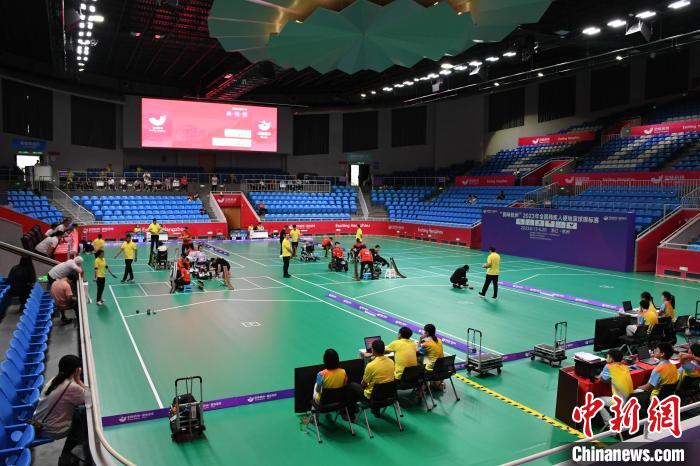 场外故事:种种细节温暖人心 很难想象,在开赛前10天,这片场地还是2023年全国拳击锦标赛(第三批)的比赛场地。 “杭州亚运会和亚残运会期间,我们在两项比赛中间有12天的场馆转换期,在这次测试赛过程中,我们仅用10天时间就完成了整体转换。”杭州体育馆馆长刘震介绍说。 一台台无障碍电梯、一条条坡面通道、可放置轮椅的运动员观赛区……上述“特殊设置”在杭州体育馆随处可见。 考虑到硬地滚球项目的特殊性,运动员均为坐轮椅参赛,因此在场地布置方面,场馆对围挡的高度,通道的宽度、长度等都进行了较大改动,并在整个流线上设置多台无障碍电梯,确保运动员通行无阻碍,运动员也拥有可停放轮椅的专属观赛区,能够在最佳视野观看比赛。 除了贴心完成场地转换任务外,多处暖心设计也引人注意。在热身场地,杭州体育馆专门设置轮椅维修站,为参赛运动员使用的轮椅提供一系列服务。该维修站将在每单元比赛开始前1小时开放,直至比赛结束。 此外,为了让运动员更专注于比赛,本次赛事还安排了特别改造过的专线公交接送运动员,运动员抵达场馆后可通过三个无障碍平台便利下车。 除了硬件设施上体现出的“暖”,志愿服务工作也同样细节满满。