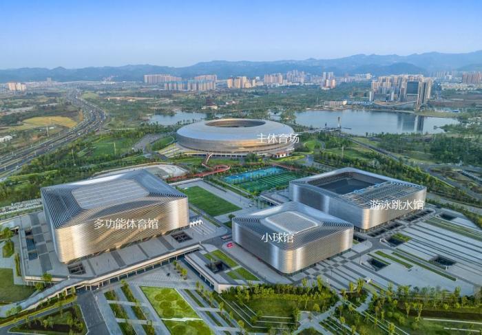 东安湖体育公园由“一场三馆”组成:主体育场、多功能体育馆、游泳跳水馆和小球馆。