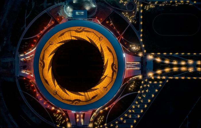 “一场”即东安湖体育公园主体育场,这里是大运会开幕式的举办场地。从空中俯瞰,主体育场采用正圆形设计,同时结合浓郁的巴蜀文化,在顶部呈现的27000平方米的“太阳神鸟”标志,是目前世界上面积最大的“太阳神鸟”图案。 凤凰山体育公园
