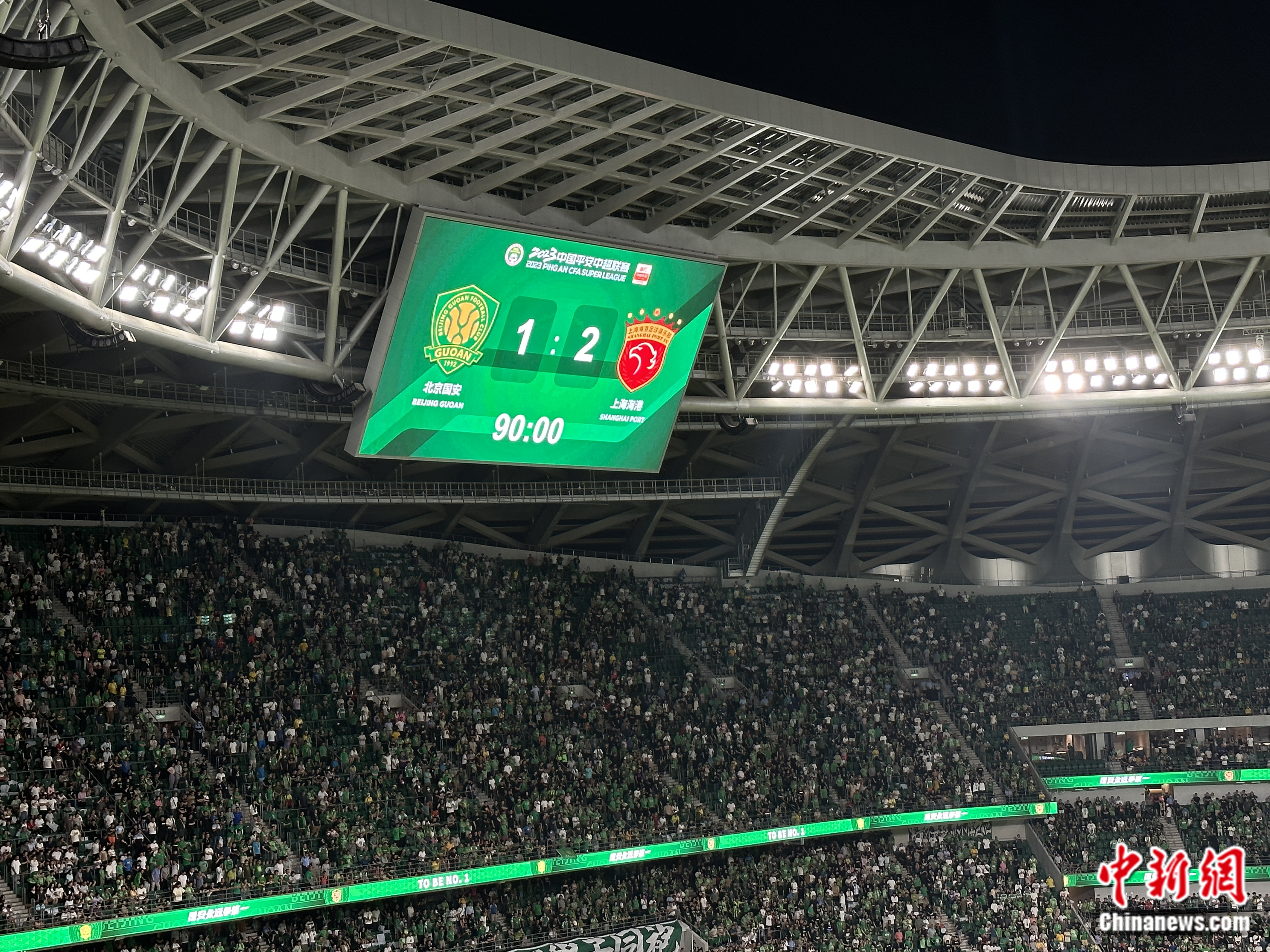 北京国安主场1:2不敌上海海港。中新网记者 卞立群 摄