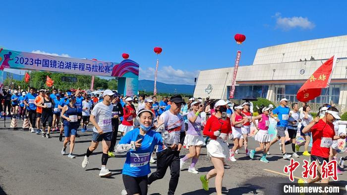 2023镜泊湖火山湿地半程马拉松比赛于6月30日在黑龙江省牡丹江市镜泊湖景区举行。来自全国各地的1000多名马拉松爱好者竞技之余尽享风景如画的镜泊湖美景。