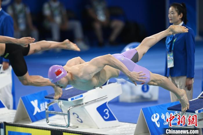 8月2日晚,覃海洋参加成都大运会男子100米蛙泳决赛。 中新社记者 张浪 摄