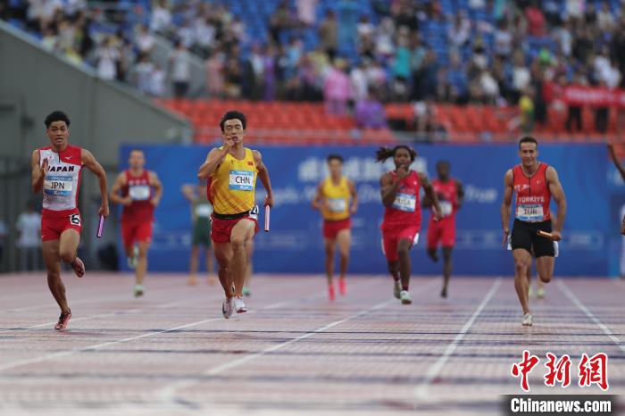 短暂的等待后,大屏幕解开悬念:中国队与泰国队均为38秒80,但中国队以千分之6秒的优势获得金牌,现场响起热烈而持久的欢呼声。泰国队获得亚军,南非队获得铜牌。 “看到大屏幕上第一个名字是中国的时候,我特别激动。”赛后,邓智舰说,一直以来他都在直道上更有优势,田径就是充满了惊喜和期待,“永远不要放弃比赛,永远不要放弃自己,只要永远不放弃,总会有惊喜发生。” 这也是陈冠锋和队友们的第一个世界级赛事冠军。此前获得成都大运会男子百米铜牌的陈冠锋说:“这个冠军在亚运会前很好地提升了我们的士气,接下来还有两个月,我们会把每个人最好的状态调动起来,争取能继续站上亚运会最高领奖台。”(完)